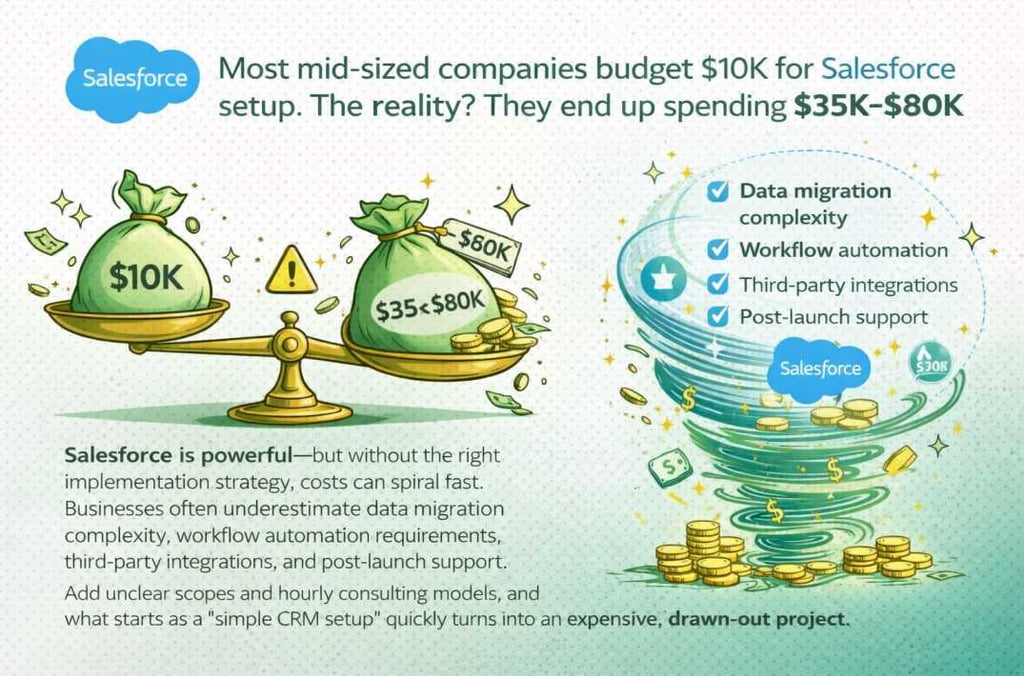 Most mid-sized companies budget $10K for Salesforce implementation. The reality? They end up spending $35K-$80K with traditional agencies. But there's a smarter path forward. 🚀